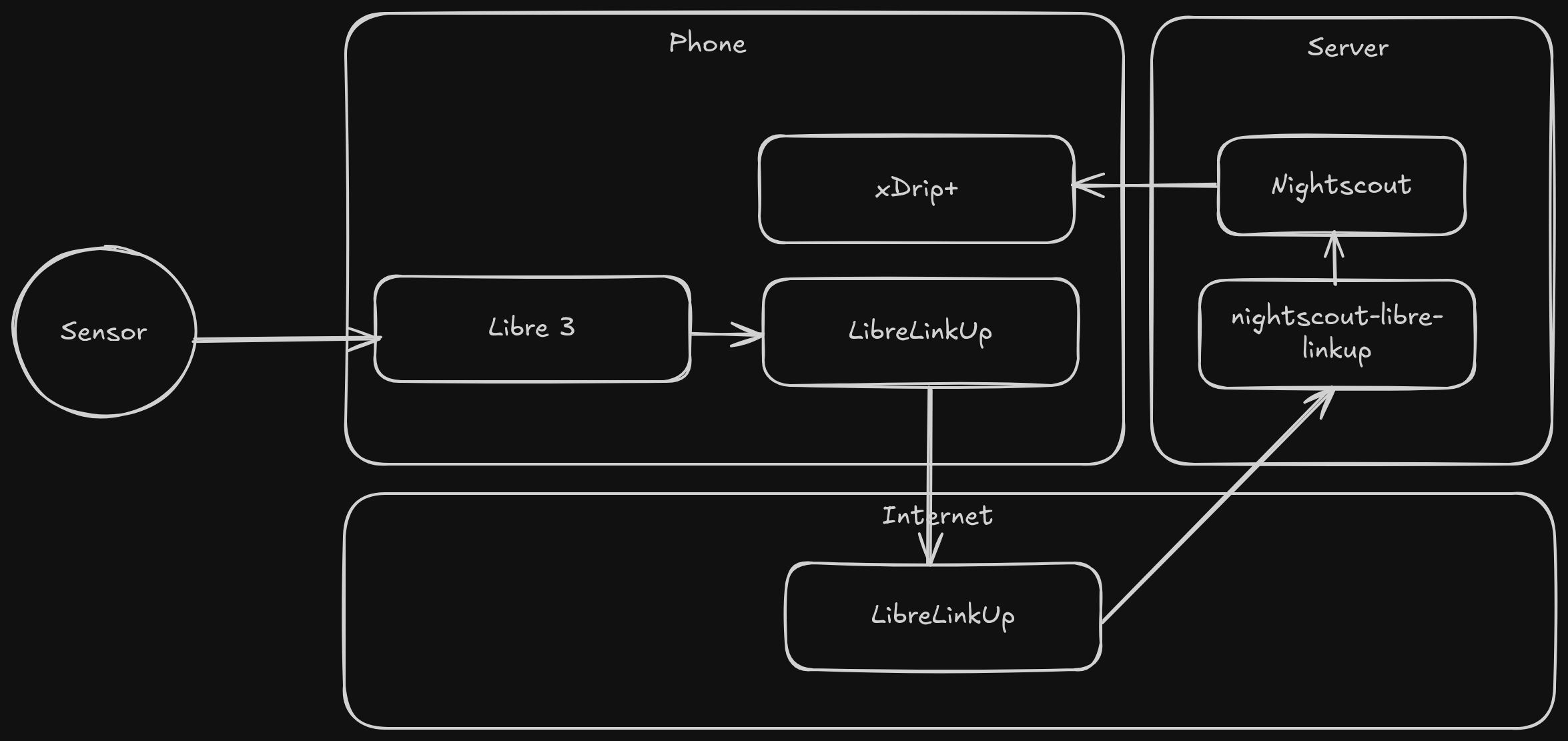 Abbott doesn’t make it easy to access your data. Thankfully, I found nightscout-libre-linkup on GitHub. LibreLinkUp is an app for monitoring multiple Libre sensors—typically used by parents of T1D children. The Nightscout collector pulls data from LibreLinkUp and uploads it to Nightscout, your own self-hosted CGM platform (an alternative to Abbott’s LibreView).