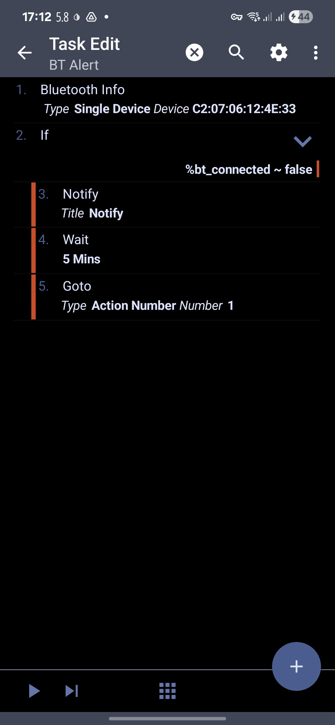 %bt_connected ~ false, then:- Action: Notify